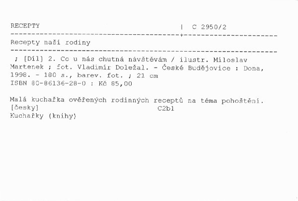Malá kuchařka ověřených rodinných receptů na téma pohoštění.