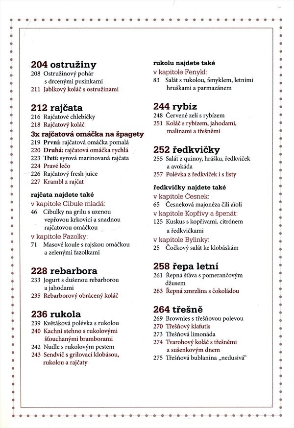 Autorka ve své druhé knize prezentuje snadné a rychlé recepty z čerstvě sklizeného, kvalitního ovoce a zeleniny z farmářských trhů. Poskytuje návody na přípravu nových pokrmů z tradičních druhů ovoce a zeleniny, jako jsou jahody, třešně, meruňky, květák, mrkev, rajčata ad., ale také jídel z méně obvyklých surovin, jako je fenykl, cuketa, koriandr, rukola. Předpisy jsou rozděleny do kapitol podle jednotlivých surovin.