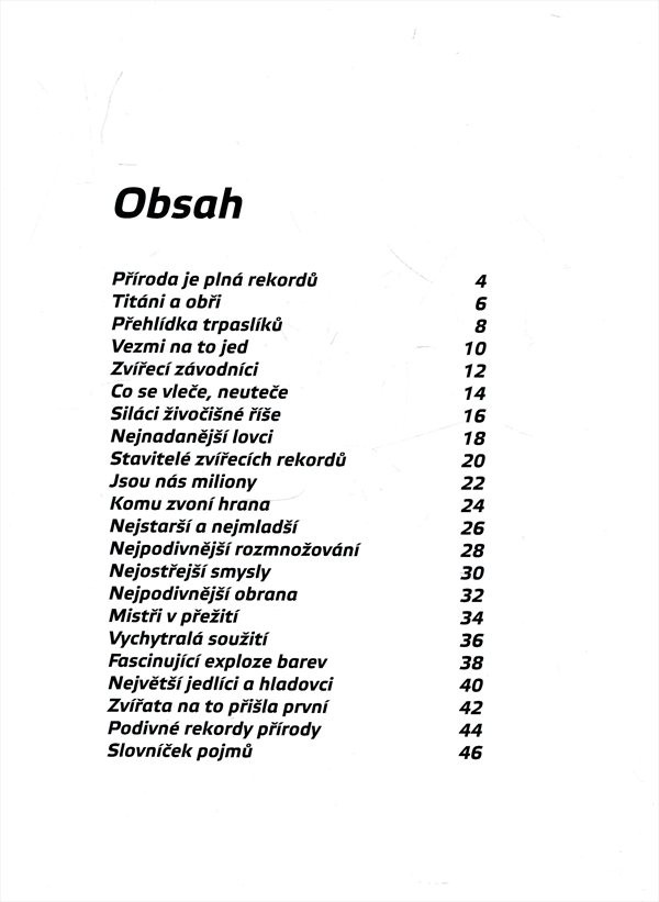 Zajímavá kniha určená všem milovníkům přírody představuje držitele rekordů z různých skupin živočichů. Pro čtenáře kolem 10 let.