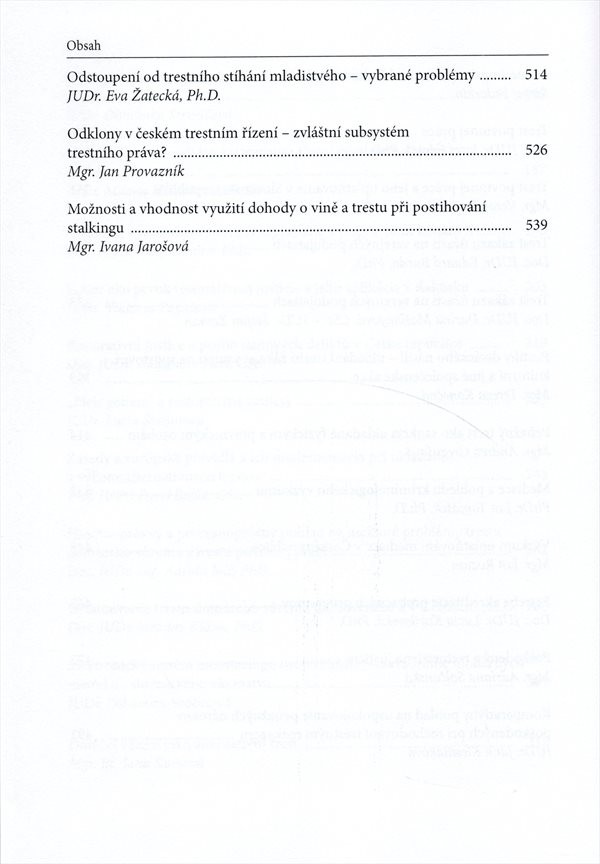 | Obsah OCHu | Trestní právo. Trestní řízení. Trestní procesní právo. Trestní zákon. Druhy trestů. Druhy trestných činů. Kriminologie. Kriminalistika. Vojenské trestní právo. Námořní trestní právo. Vězeňství. ODKAZ: Vojenská justice viz W1e1 |