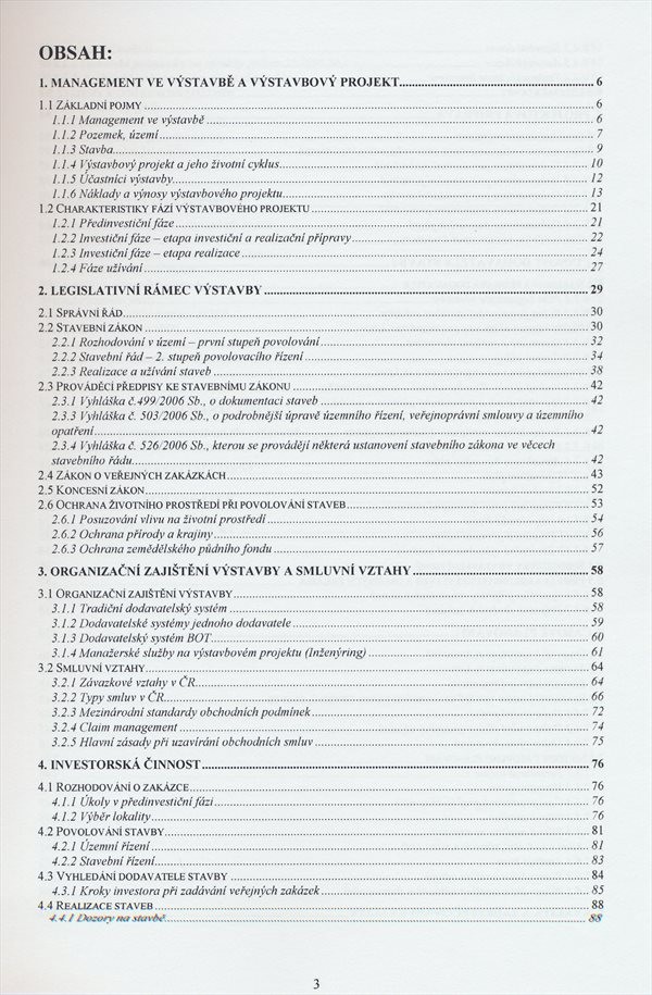 Problematika řízení výstavbových projektů z pohledu různých účastníků projektu. Investorská činnost, činnost dodavele stavby. Základní legislativní rámec výstavby, procesy plánování atd.