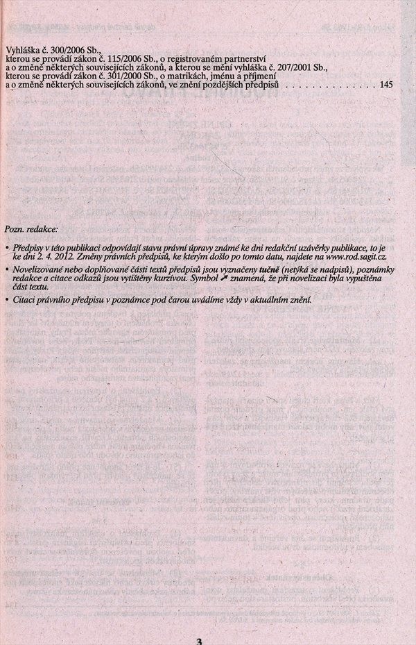 Právní předpisy z oblasti rodinného práva podle stavu k 2. 4. 2012.
