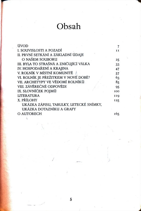 Sociologický obraz "přelomového období" českého venkova. Venkovská komunita jako kulturní typ. Soukromé rolnické hospodaření, jeho soužití s městskou kulturou a perspektivy do budoucnosti.(Předmětem výzkumu byla rolnická hospodářství z jižních Čech a Pošumaví).