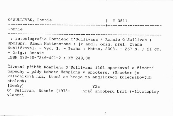Autor | Ronnie O'Sullivan ; [z angl. orig. přel. Ivana Nuhlíčková] ; spolupr. Simon Hattenstone |
