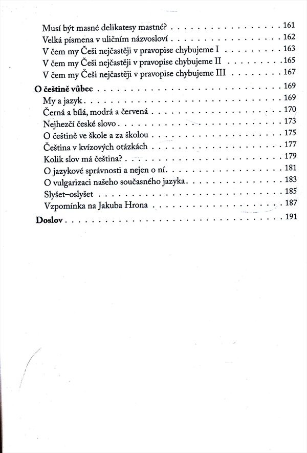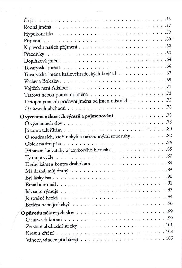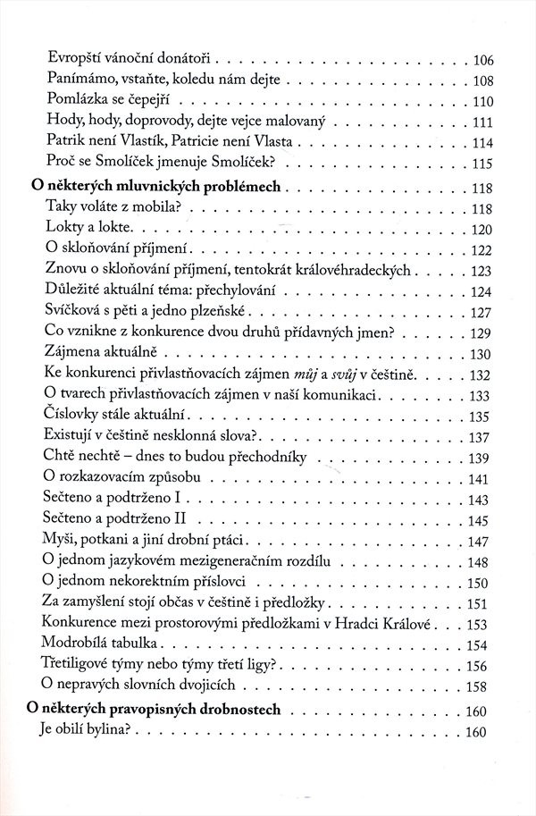 Knížka je určena současným uživatelům češtiny, všem, kterým není lhostejný stav naší současné veřejné komunikace, tedy to, jak v dnešní době mluvíme, píšeme, co slyšíme a slýcháme, co čteme. Není systematickým výkladem české mluvnice, přináší jen příležitostná poučení v podobě drobných, mnohdy humorných epizod a popularizačních komentářů, které by mohly přivést čtenáře k hledání odpovědí na některé jazykové problémy, s nimiž se běžně setkáváme v naší aktuální současnosti. Především pak ale chce nás všechny aktivizovat k zamyšlení nad úrovní naší komunikace, k přemýšlení o jazyce. Nakladatelská anotace.