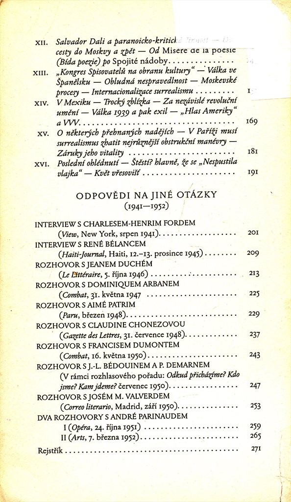 Rozhlasové rozhovory André Bretona z r. 1952 postihují podstatu surrealismu a hlavní etapy jeho vývoje.