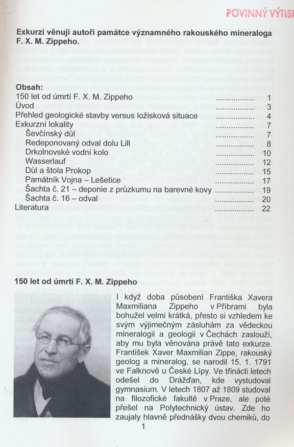 Geologický průvodce mapuje dějiny příbramských rudních revírů, ložiskovou situaci v dolech, připomíná osobnost Franze Xavera Maxmiliana Zippeho, rakouského přírodovědce, který v Příbrami krátce působil.