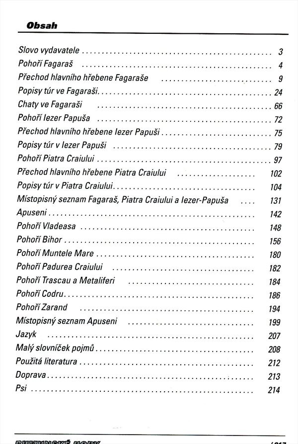 Průvodce představuje turisticky zajímavé trasy ve vybraných pohořích rumunských Karpat (Faragaš, Piatra Craiului, Iezer Papuša a Apuseni).