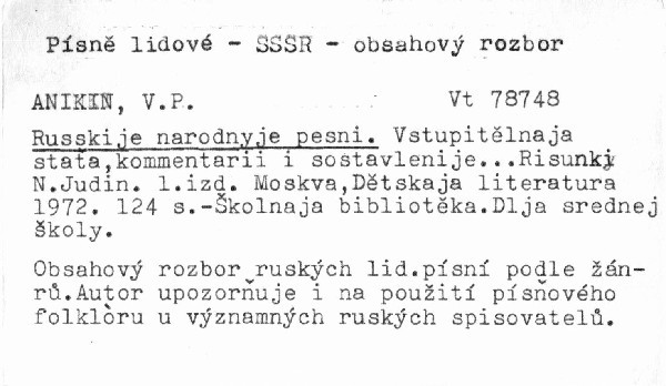 Obsahový rozbor ruských lid. písní podle žánrů. Autor upozorňuje i na použití písňového folklóru u významných ruských spisovatelů.