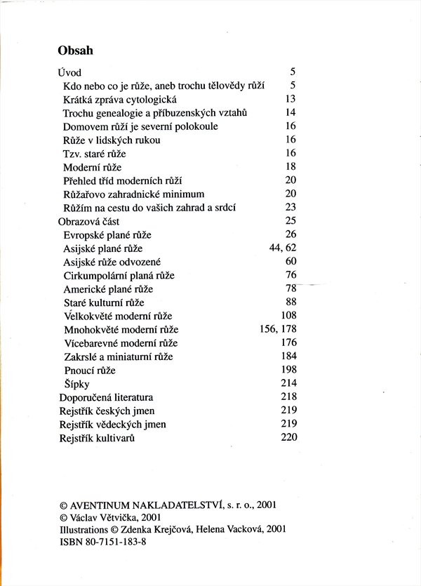 Po obsáhlém úvodním výkladu o tomto druhu květin následuje vlastní obrazová část. Každému druhu je věnována jedna dvoustrana, kde je název rostliny (český i latinský), botanický popis, barevná celostránková kresba stonku i květu a černobílá nebo barevná kresba určujícího či charakteristického detailu. Doplněno krátkým seznamem doporučené literatury, dále rejstříkem českých jmen růží, rejtříkem latinských názvů a resjtříkem kultivarů. Pouchovv Z2e