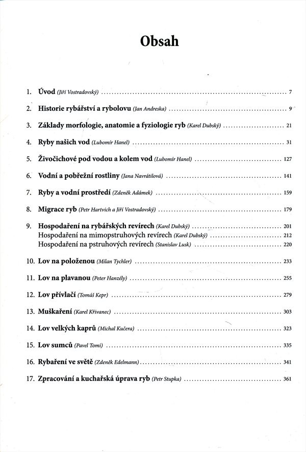 Obsáhlá monografie seznamuje s historií našeho rybářství, rybami, vyskytujícími se na našem území, správou hospodářských revírů a metodami lovu ryb (i ve světě).