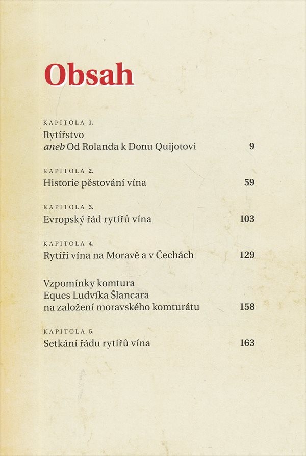 Výpravná textová a fotografická publikace na křídovém papíře seznamuje s historií rytířství, pěstování vína a vzniku Evropského řádu rytířů vína i jeho české odnože.