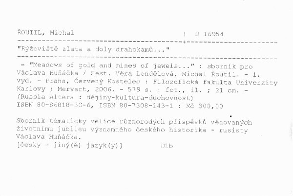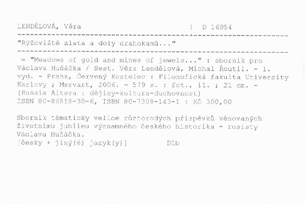 | Podnázev | sborník pro Václava Huňáčka = "Meadows of gold and mines of jewels..." |