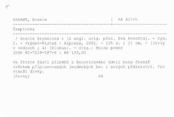 | Autor | Bonnie Bryantová ; [z angl. orig. přel. Eva Konečná] |