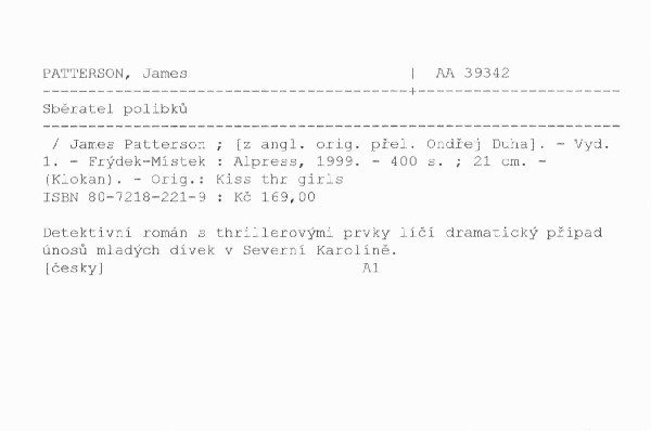 | Autor | James Patterson ; [z angl. orig. přel. Ondřej Duha] |