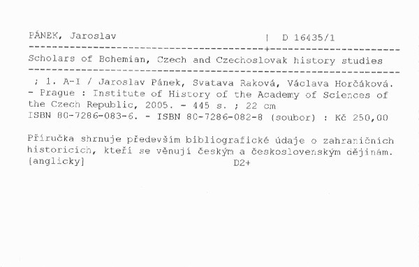 Příručka shrnuje především bibliografické údaje o zahraničních historicích, kteří se věnují českým a československým dějinám.