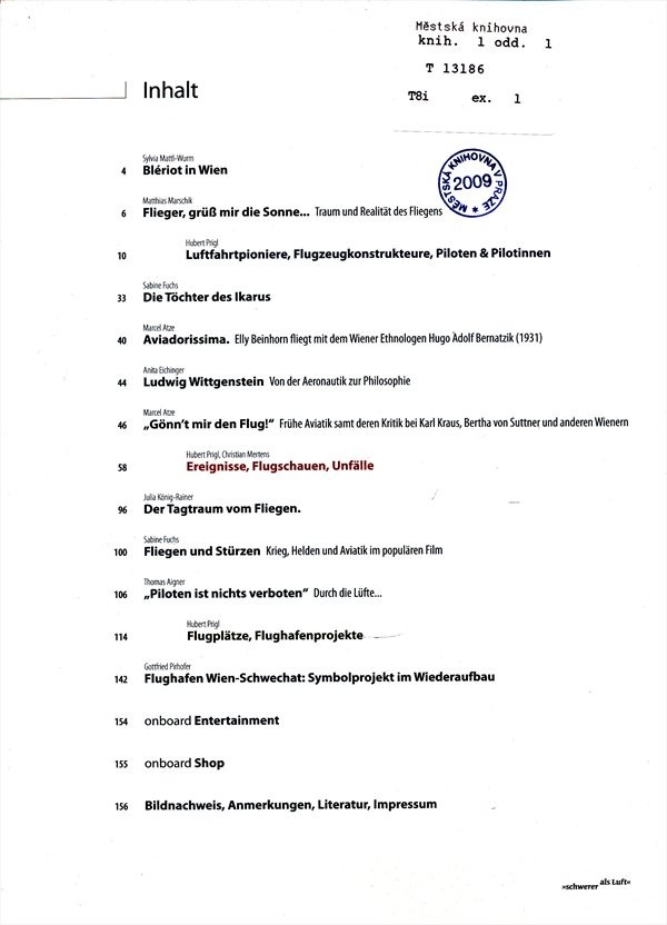 | Podnázev | 100 Jahre Motorflug in Wien : das Bordmagazin zur Ausstellung : 18.09.2009 bis 26.02.2010 in der Wienbibliothek im Rathaus |