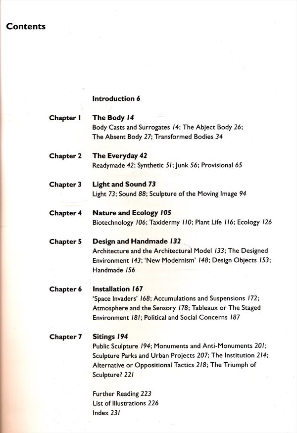 Přehled vývoje světového sochařství v posledních zhruba dvaceti letech (90. léta 20. století a počátek 21. století). Výklad je členěn tematicky (lidská figura, každodennost, světlo a zvuk, příroda, instalace, sochy ve veřejném prostoru).