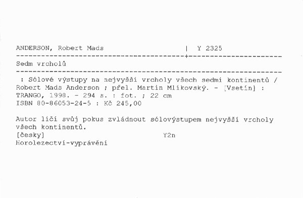 | Podnázev | Sólové výstupy na nejvyšší vrcholy všech sedmi kontinentů |