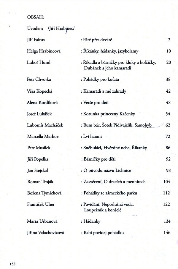 Krátké medailony a ukázky z děl sedmnácti současných východočeských autorů dětské literatury.