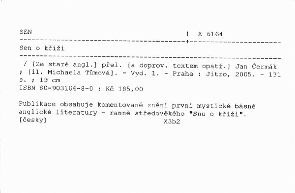 Publikace obsahuje komentované znění první mystické básně anglické literatury - ranně středověkého "Snu o kříži".