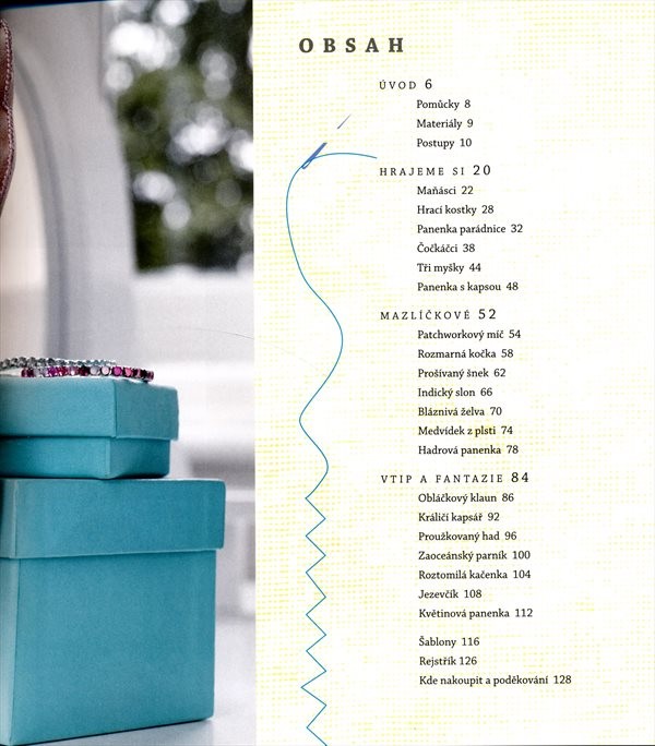 Kniha obsahuje dvacet inspirativních návrhů na ušití zvířátek, maňásků a ručně vyšívaných panenek, ušitých z běžně dostupných materiálů a ozdob. Některé hračky se šijí ručně, jiné zase skoro celé na stroji. Pro každý návrh je spočítána spotřeba, doporučeny typy materiálů a jejich barvy, i když je samozřejmě možné si pro svou hračku zvolit libovolné kombinace anebo ji třeba ušít v jiných rozměrech. Stačí jen v určitém poměru zvětšit, či zmenšit šablonu a podle toho přizpůsobit materiál. Každý pracovní postup je zde srozumitelně vysvětlen, nechybí ani popisné ilustrace a praktické šablony, návody na jednoduché výšivky, aplikace, patchwork a našívání korálků. Nedílnou součástí knihy je nemalé množství pěkných barevných fotografií hotových hraček.