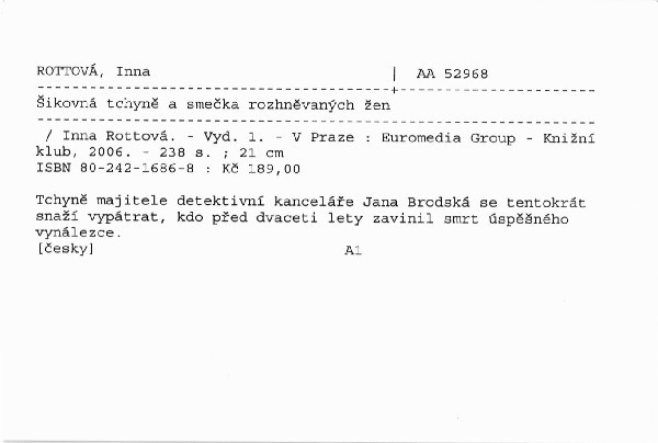 Tchyně majitele detektivní kanceláře Jana Brodská se tentokrát snaží vypátrat, kdo před dvaceti lety zavinil smrt úspěšného vynálezce.