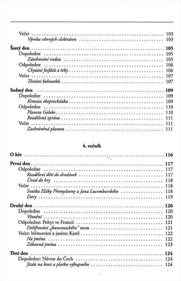 Text je rozdělen na pět částí - podle ročníků, kterým jsou jednotlivé programy určeny (1. - 5. ročník ZŠ). V jednotlivých částech je představen vlastní program s popisem organizace a systémem bodování. Následuje výčet jednotlivých her a činností spolu s charakteristikou zaměření, potřebnou motivací a pomůckami. Závěr tvoří systém hodnocení a potřebné přílohy.