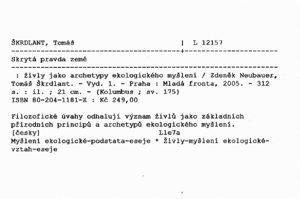 | Podnázev | živly jako archetypy ekologického myšlení |
