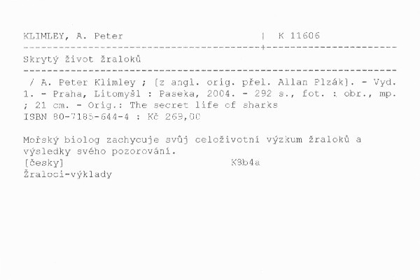 | Autor | A. Peter Klimley ; [z angl. orig. přel. Allan Plzák] |