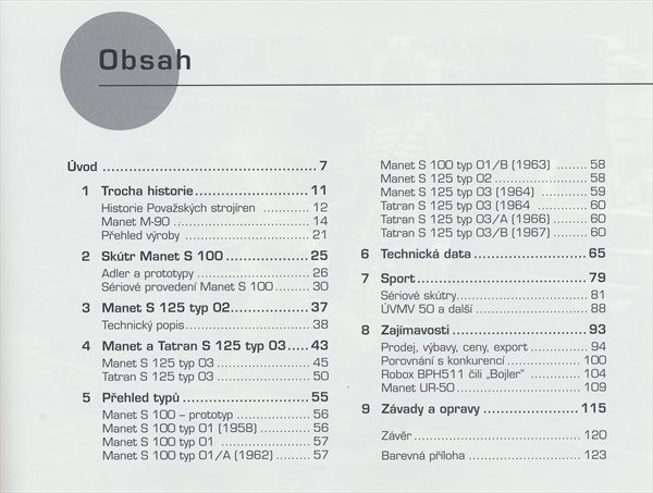 Publikace věnovaná historii, jednotlivým verzím, konstrukci a vybavení skútrů Manet a Tatran, vyráběných na Slovensku v letech 1958 až 1970.