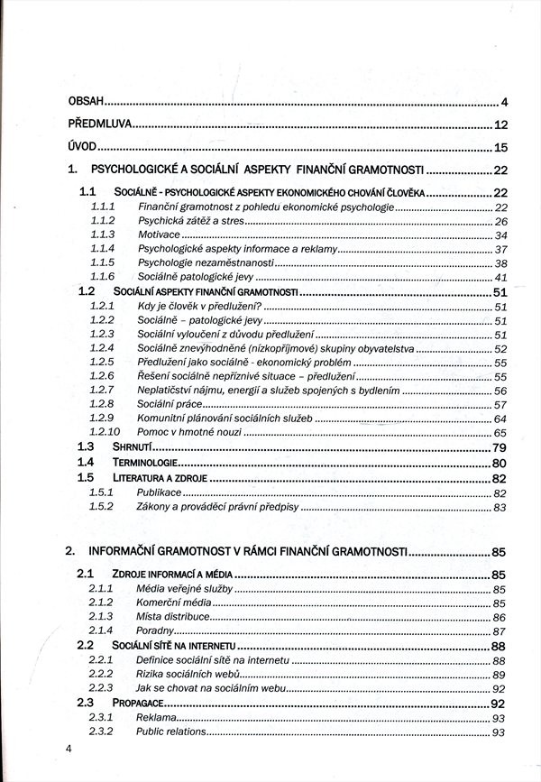 V současné době vyvolává potřebu finančního vzdělávání zjevný deficit českých občanů v této oblasti, ale i rychlé tempo růstu zadluženosti obyvatelstva a zároveň agresivní prodej finančních produktů. Lidé se zadlužují a předlužují, život na dluh se stal běžnou součástí života posledních let. Kniha poskytuje zásadní informace o sociálních aspektech zadluženosti, ochraně spotřebitele, o způsobech placení, úvěrech, spoření, investicích a pojištění. Samostatnou kapitolu tvoří daňový systém, tvorba rozpočtu a uzavírání smluv.