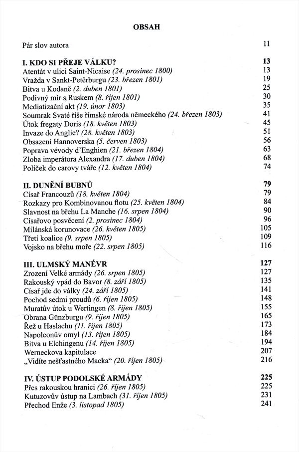 Zevrubný popis Napoleonova válečného tažení z roku 1805 a především bitvy u Slavkova.