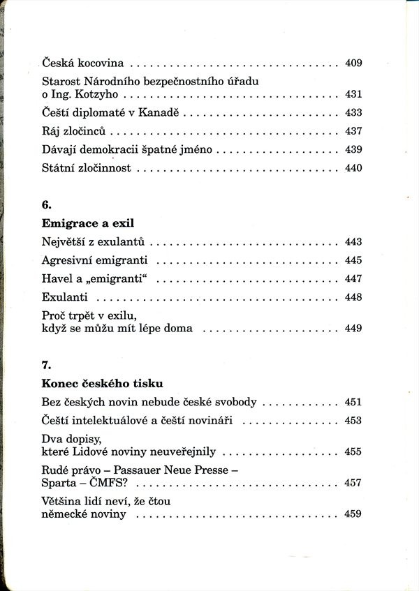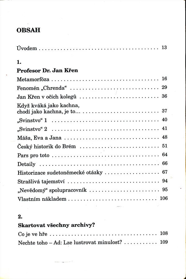 Tematicky různorodé příspěvky - život a dílo českého historika Jana Křena, skartace předlistopadových archivů, StB, síť jejích agentů a seznamy jejích pracovníků, emigrace a exil, zánik českého tisku atd. Přílohu tvoří velké množství reprodukovaných dobových dokumentů.