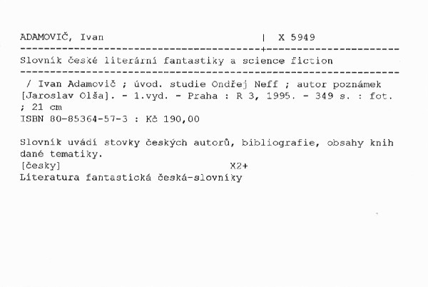 | Autor | Ivan Adamovič ; [pozn. Jaroslav Olša] ; úvod. studie Ondřej Neff |
