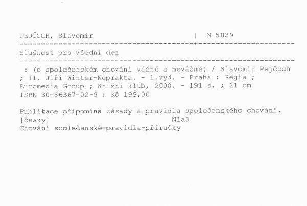 | Podnázev | (o společenském chování vážně a nevážně) |