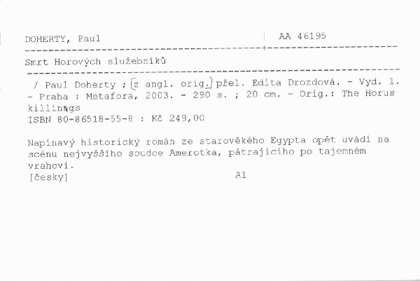 | Autor | Paul Doherty ; [z angl. orig.] přel. Edita Drozdová |