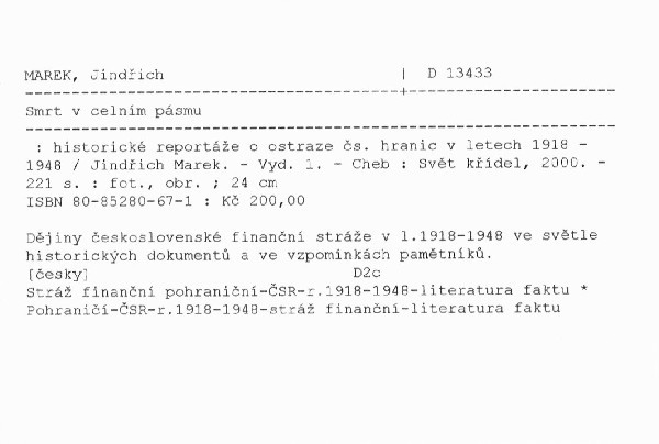 Dějiny československé finanční stráže v l.1918-1948 ve světle historických dokumentů a ve vzpomínkách pamětníků.