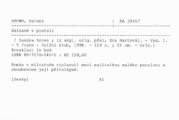 | Autor | Sandra Brown ; [z angl. orig. přel, Eva Hartová] |