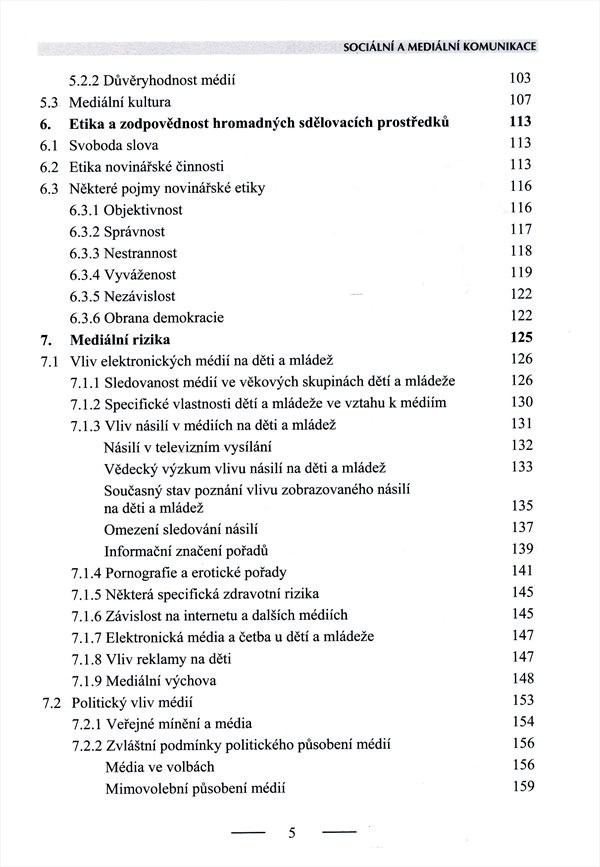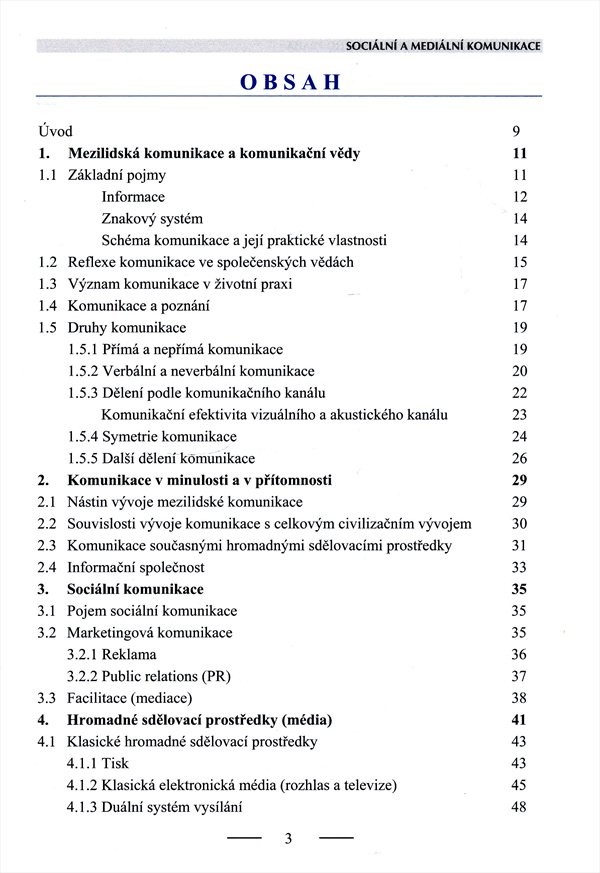 Učebnice pro vysoké školy obsahuje základní poznatky z oblasti sociální a mediální komunikace, základní pojmy z teorie komunikace a analýzu možných rizik a přínosů současných masmédií.