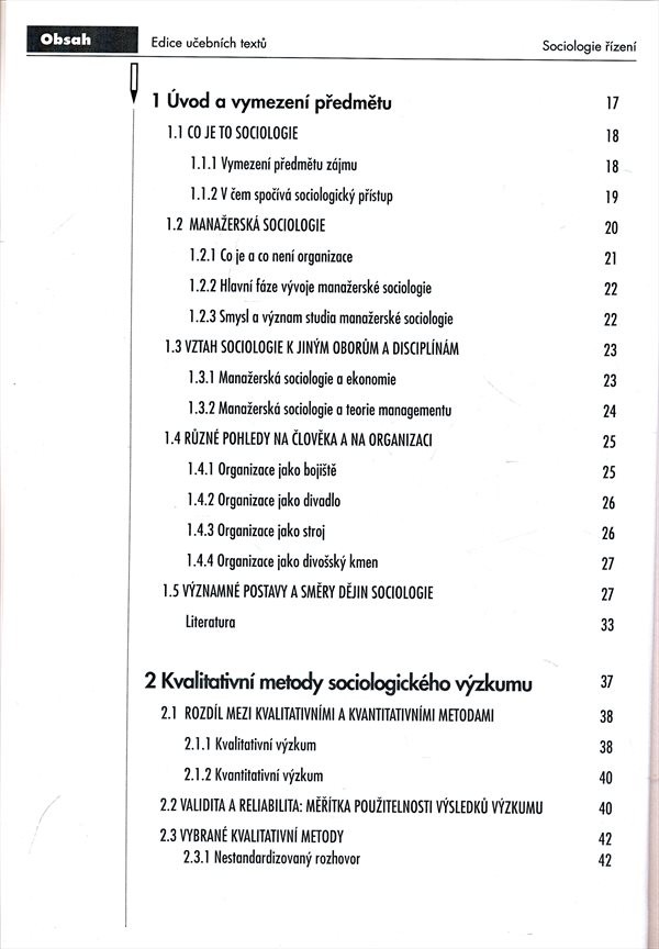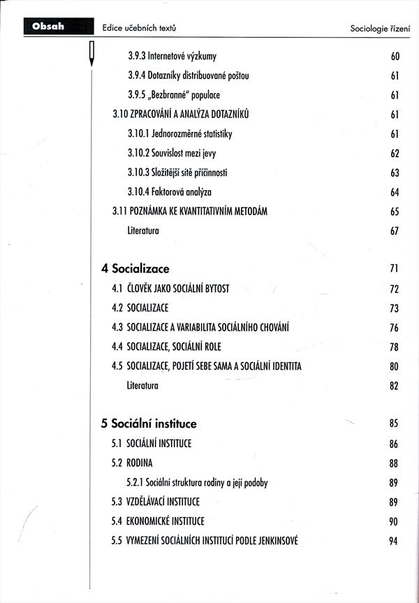 Skripta zaměřená na vymezení pojmu manažerská sociologie, metody sociologického výzkumu, problematiku socializace nebo řešení konfliktů v organizaci.