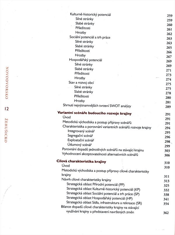 Provádí důkladnou SWOT analýzu současného stavu území a na jejím základě předkládá variantní scénáře budoucího vývoje krajiny a její cílové charakteristiky. Text je doplněn velkým počtem map, grafů, tabulek a fotografií. Nakladatelská anotace. Kráceno.