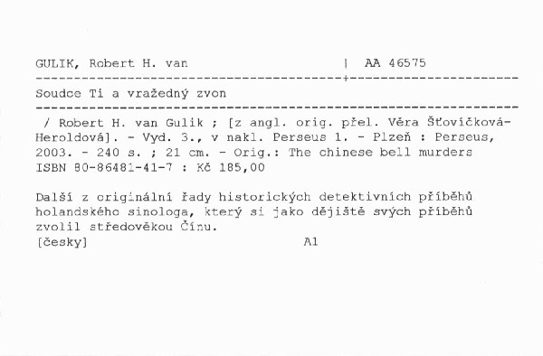 | Autor | Robert H. van Gulik ; [z angl. orig. přel. Věra Šťovíčková-Heroldová] |