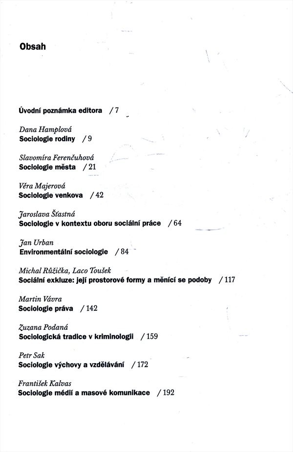 Jednotlivé studie se věnují různým oblastem a oborům sociologie (např. právo, náboženství, vzdělání, vojenství, veřejné mínění nebo volný čas).