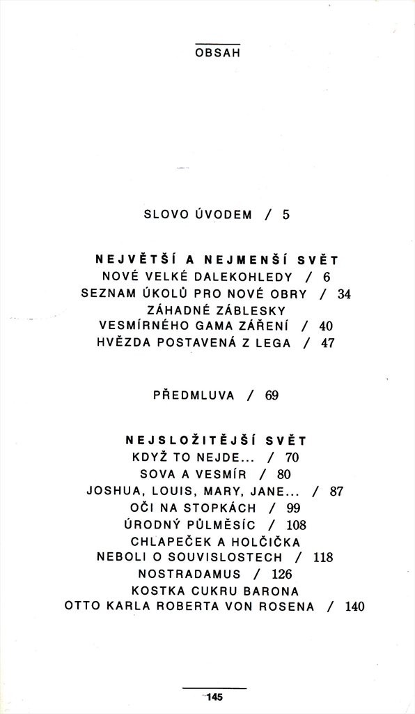 Čtvrté volné pokračování populárně vědecké edice je společným dílem autorů P.Koubského a F.Koukolíka. Popisuje projekt nové generace velkých astronomických dalekohledů, přípravu mezinárodní kosmické stanice ISS a pátrání po zábleskových zdrojích záření gama. Problematika života je zastoupena plasticitou neuronálních sítí, novými otázkami přirodního výběru, biologickými zbraněmi, blížícím se miléniem a Nostradamovým proroctvím, klimatickými změnami. Záv.