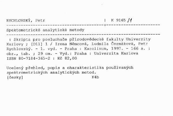 Skripta Spektrometrické analytické metody II jsou věnovaná magnetické rezonanční spektrometrii (NMR, EPR), hmotnostní spektrometrii, spektrometrii elektronů a laserové spektrometrii.