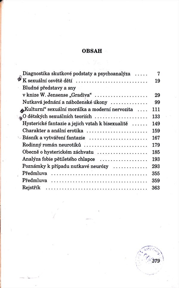 Nejedná se o obecný výklad Freudova učení, ale o různorodé kratší studie. Učení psychoanalýzy je zde prezentováno v souvislosti s konkrétními tématy a problémy. A tak v knize mimojiné nalezneme studii o Freudově pojetí kultury, podle kterého se kultura zakládá na potlačování pudů, psychoanalytický rozbor novely W.Jensense, ale třeba také výklad anální erotiky či pojednání o vztahu dětí k sexu. Tématika jednotlivých studií je velmi pestrá.