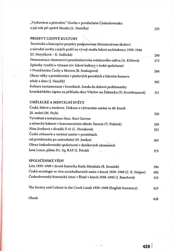 Monografie sleduje společenský i kulturní život v Československu v období let 1939-1949.