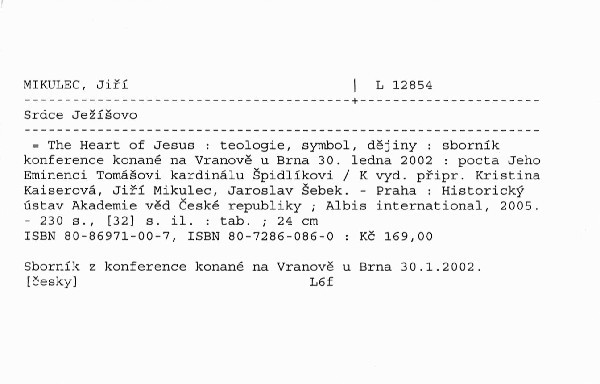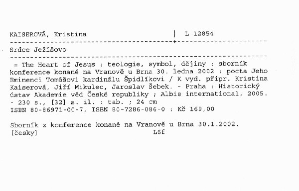 | Podnázev | teologie, symbol, dějiny : sborník konference konané na Vranově u Brna 30. ledna 2002 : pocta Jeho Eminenci Tomášovi kardinálu Špidlíkovi = The Heart of Jesus |