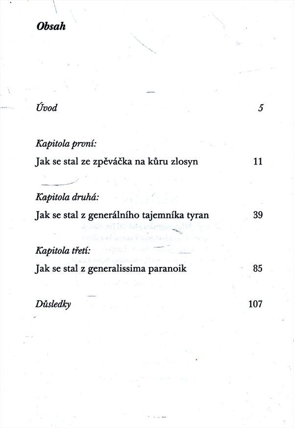 Práce zachycuje Stalinovo dětství, mládí, vzdělání v kněžském semináři, Stalinovu činnost revolucionáře i jeho funkce po nastolení komunistického režimu (lidový komisař pro národnosti a později tajemník bolševické strany). Pozornost je rovněž věnována Stalinově úsilí zlikvidovat své politické odpůrce, průběhu kolektivizace, politickým procesům v SSSR v období 30. let, sovětským krokům na mezinárodní scéně (např. uzavření sovětsko-německého paktu r. 1939, napadení Finska), průběhu 2. světové války, stručné charakteristice poválečného období v Sovětském svazu, počátkům studené války a diktátorově smrti. Stranou Johnsonova zájmu není ani Stalinův soukromý život, osobnost a životní styl.
